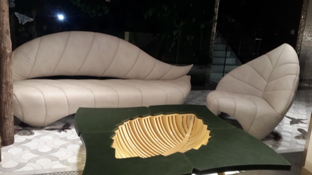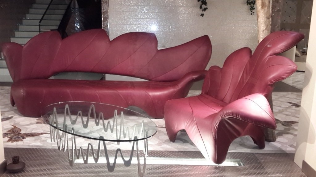 Az olasz dizájnerek által megálmodott levél formájú bútorok bőrből készülnek, több színben, a hozzájuk tartozó dohányzóasztallal.
